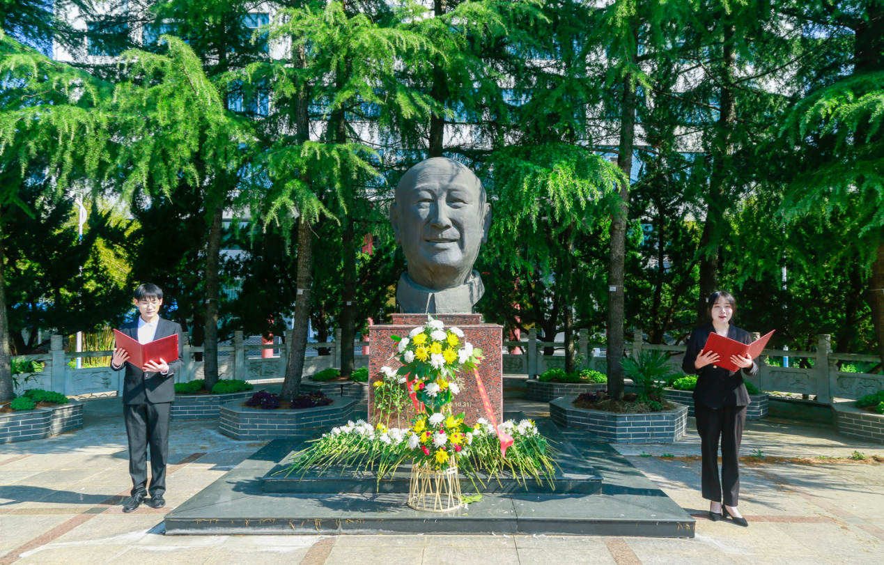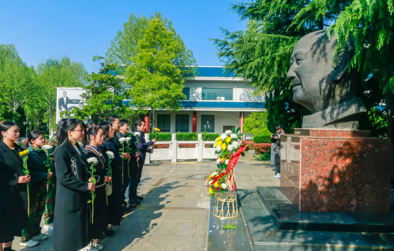 师生依次向钱学森铜像献花