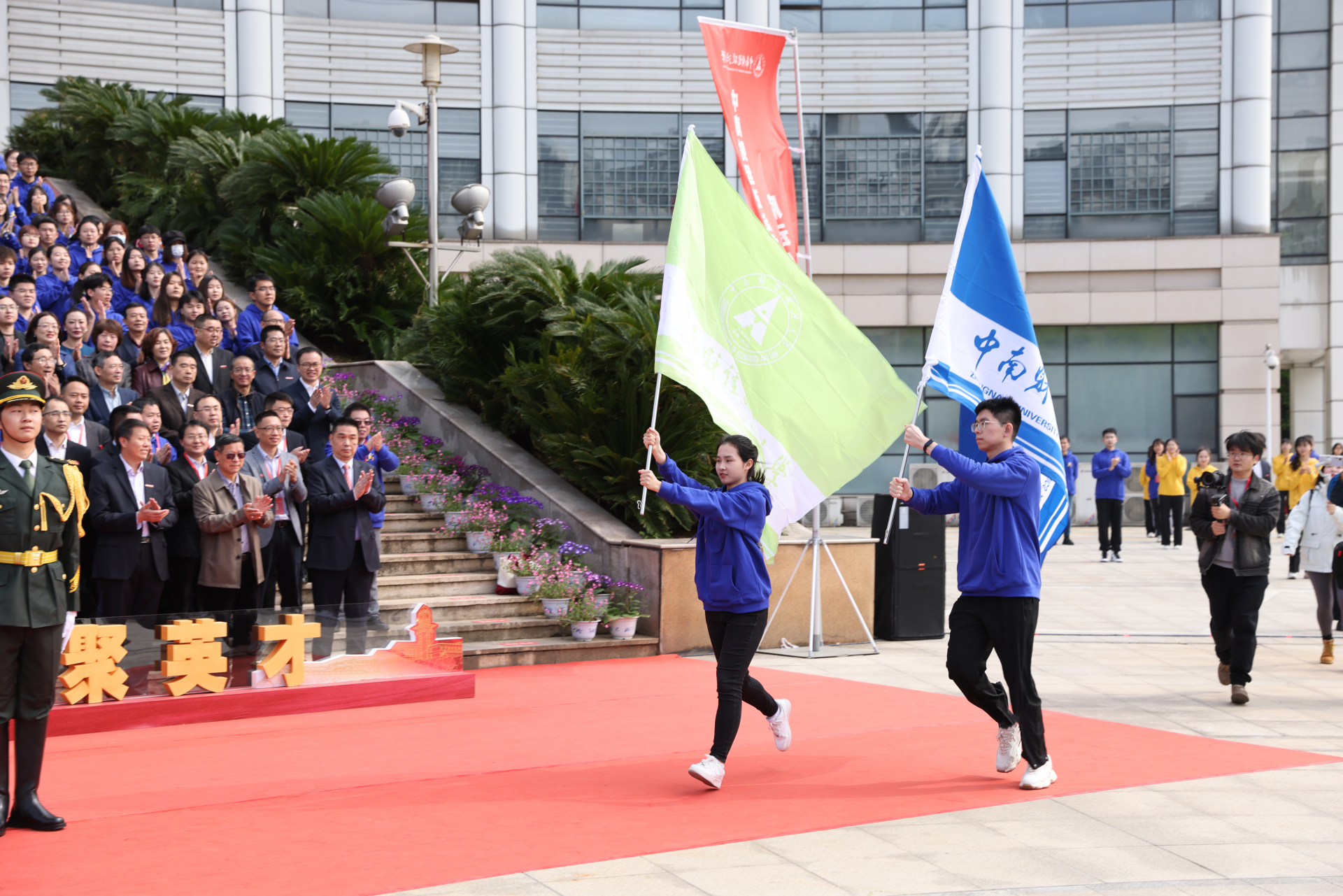 “中南财经政法大学庆祝建校75周年活动正式启动!”侯振发宣布。校旗传递仪式开始,杨灿明振校旗,王永光迎旗。由校友和师生代表组成的75支队伍,围绕中原楼前广场,手牵手、心连心,传递校旗。一棒一棒护旗手接力传递,传递的是“由党创办、建校为党、成长为国、发展为人民”的初心使命,是立德树人的坚定信仰,是生生不息的中南大精神,是兴校强国的伟大梦想。