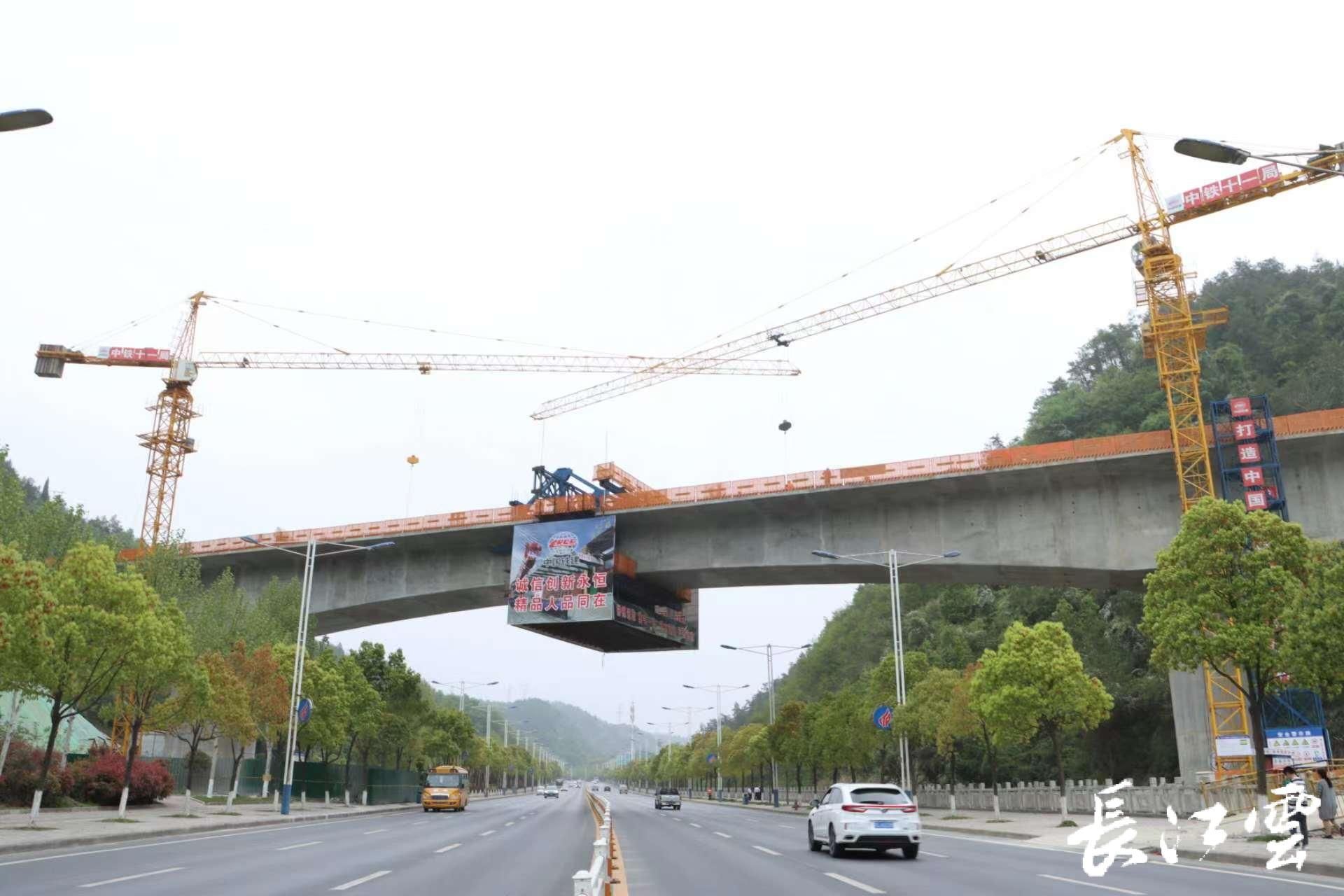 跨汉江大道大桥连续梁段施工采用悬臂灌注、简支箱梁移动模架现浇等施工,部分连续梁段跨越十堰市区交通繁忙的十堰大道,施工周期长、交通压力大、安全风险高,连续梁施工控制难度大。跨汉江大道大桥悬臂连续梁合龙段位于既有十堰市区快速路上,来往车辆川流不息,再加上紧邻南水北调丹江口库区,周边施工环境复杂,生态环保要求高。为不影响快速路正常通行,建设单位按照“环保优先,绿色施工”的原则,最大限度地减少施工给周围环境造成的不利影响,严格落实保护自然环境和文化遗产,采用了多套先进的环保处理设备,集中处理污水和弃渣,做到零排放。同时采取先进的施工工艺,有效降低了施工成本,缩短了工期。