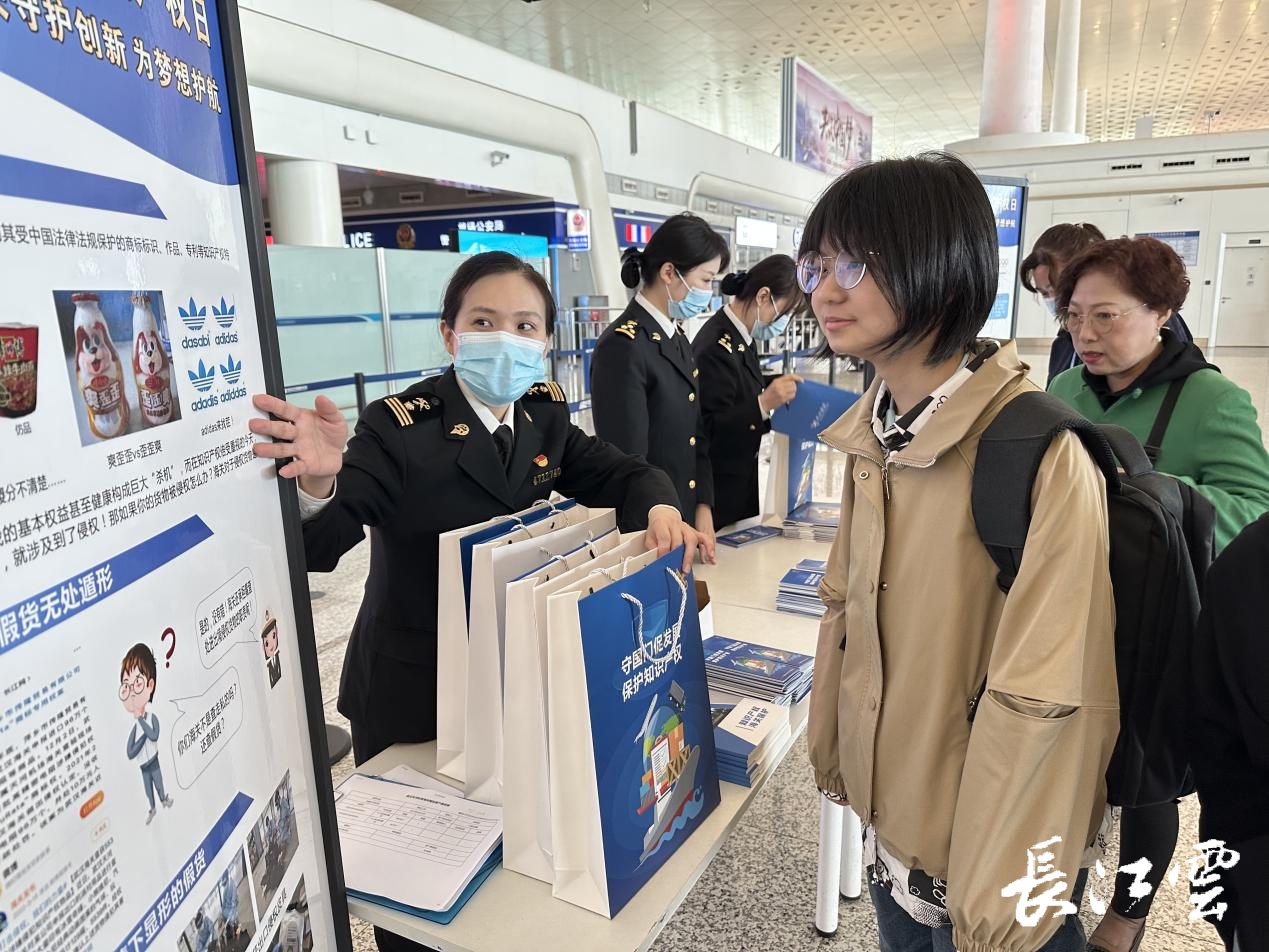4月26日,武汉海关关员深入金湖社区开展知识产权普法,通过搭建宣传展台、发放宣传手册、民众互动答题等方式,向社区群众讲解知识产权海关保护政策,让在场群众了解了关于侵权商品的相关知识及海关在进出口环节保护知识产权的方式方法。当日该关所属武汉天河机场海关在旅检现场同步举办“查获侵权商品实物展”,向进出境旅客展示查扣侵权货物,播放宣传视频,发放宣传图册,提醒广大群众在出入境时注意不要携带侵权物品,并在日常生活中选择正规渠道消费、掌握一定的真伪鉴别技巧,远离侵权商品。