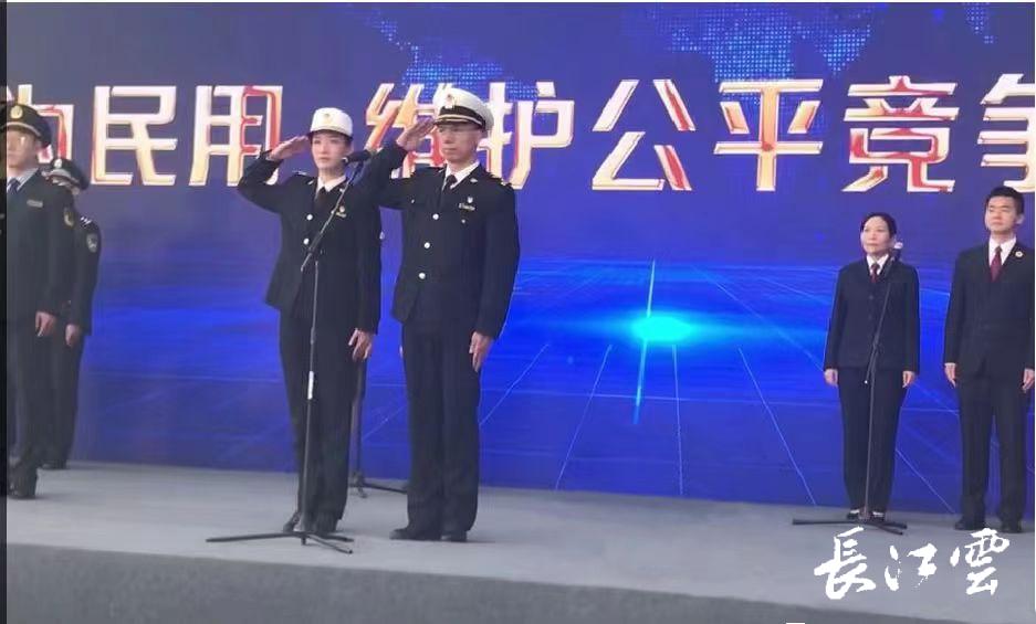 “打击进出境侵权行为,维护国门法治秩序,服务企业自主创新,武汉海关在行动。”4月20日,武汉海关参与湖北省知识产权宣传周系列活动之“权为民用,维护公平竞争的市场环境”誓师仪式,两名青年关员与其他7个单位代表共同为加强知识产权协同保护,助力湖北打造全国知识产权保护高地庄严立下誓词。当天,武汉、长沙、南昌三地海关以武汉作为主会场,以“线上+线下”结合的方式联合开展知识产权保护执法培训,提升一线对侵权商品的查发能力。此次培训也是今年长江中游三地海关加强关际合作,积极打造“鄂湘赣三关如一关”一体化知识产权保护格局的有力实践。