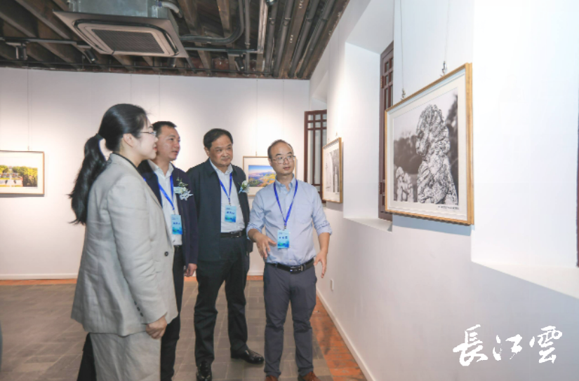 省文旅厅产业发展处副处长胡双喜,省摄影家协会驻会副主席虞旻子,原湖北省旅游局副局长、湖北省乡村旅游协会总顾问、湖北省文旅潮研究会名誉会长陆令寿,钟祥市副市长李辉,钟祥市文旅局局长郭庆,钟祥市商务局局长吴波共同为“浪漫寿乡 镜彩钟祥”摄影图片展揭幕。