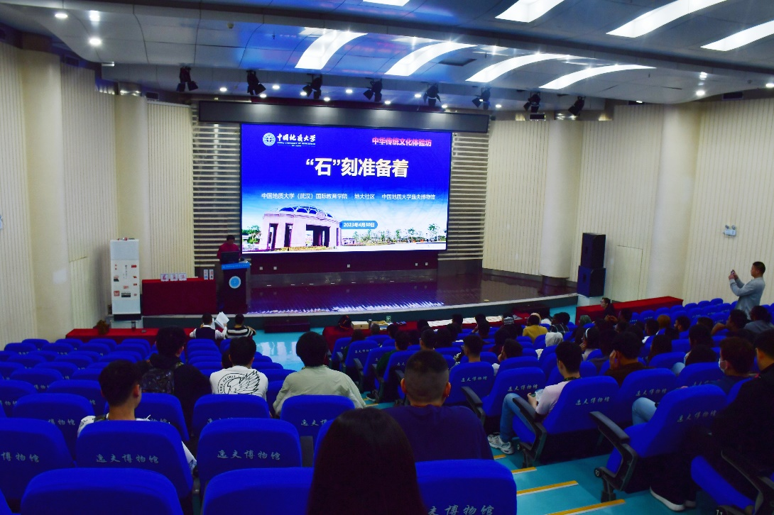 为切实推动党的二十大精神深入人心、落地生根,打通党的二十大精神学习宣传贯彻的“最后一公里”,宣传清廉文化精神。4月30日上午,武汉市洪山区关山街道地大社区、中国地质大学国际教育学院联合中国地质大学逸夫博物馆举办第四期“中华传统优秀文化体验坊”公益活动——“‘石’刻准备着”,本期活动邀请著名篆刻艺术家宋斌教授与中国传统文化中外爱好者们共聚一堂,沉浸式体验传统印章创作之美。