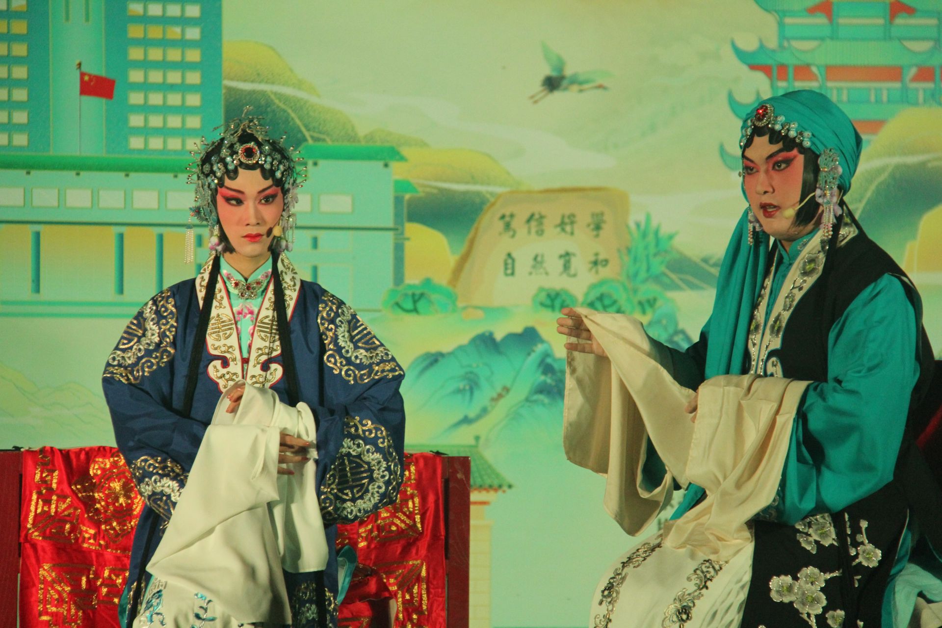 夜幕降临,灯光更显。一场传统特色节目展演在该校南湖中心运动场举行。中南民族大学京剧团带来了一场特色节目——《锁麟囊·三让椅》,眼随手动,绘声绘色,角色的一举一动、一言一行都在紧紧吸引着在场观众的视线。“《锁麟囊·三让椅》是程派京剧剧目中的典型故事,我在本次表演中饰演薛湘灵一角。京剧是国粹,很高兴本次展演为我们提供了一个向更多人展示京剧,让更多人了解京剧、关注京剧的舞台。”该校外语学院2020级学生杨帆说道。