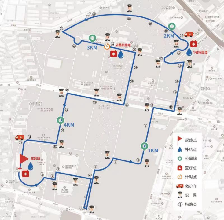为保证本次活动的顺利进行,组委会按照“汉马”标准聘请了专业的运营团队,80余名工作人员、150名志愿者、30余名安保人员为活动保驾护航,还提供种类丰富的补给品和专业的医疗保障,为所有参赛选手发放参赛物料和纪念品,贴心周密的组织工作得到参赛师生和校友的一致好评。