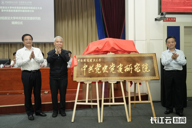 中共党史学会常务副会长、原中央党史研究室副主任李忠杰教授,中共湖北省委党史研究室主任何光耀,中南财经政法大学党委书记侯振发教授共同为研究院揭牌