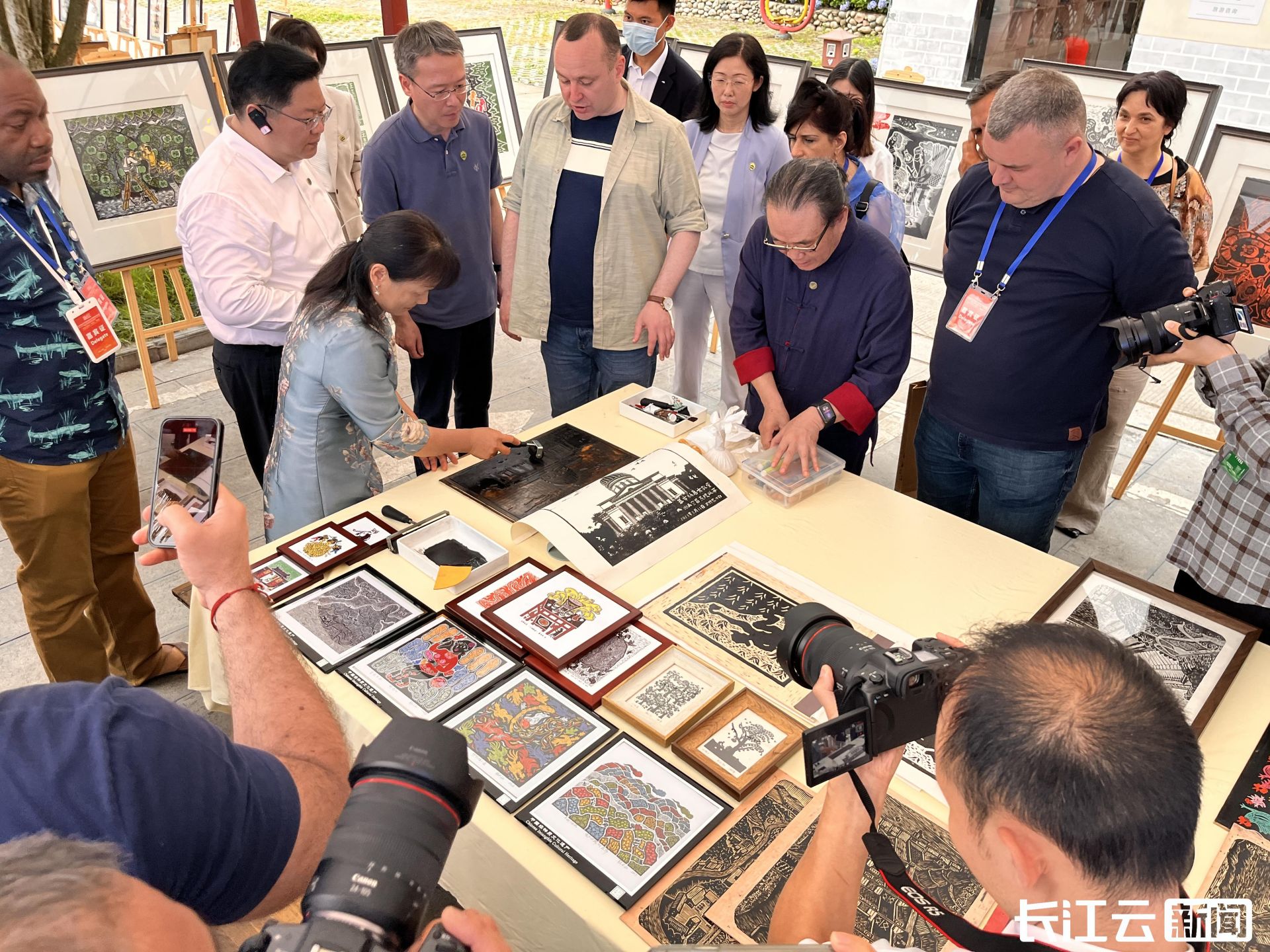 在宜昌许家冲村,外国友人们还欣赏了宜昌的剪纸、版画、刺绣等传统文化艺术,品尝了用许家冲村种植的橙子榨成的橙汁,大家都说,酸酸甜甜,象征着这里的人民很幸福,生活丰富多彩。