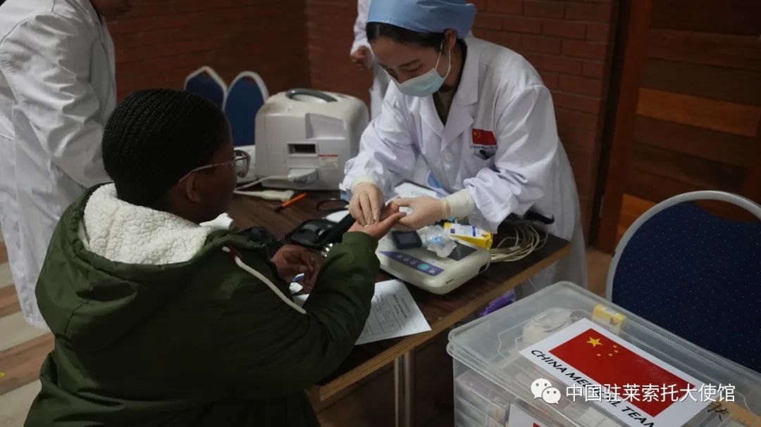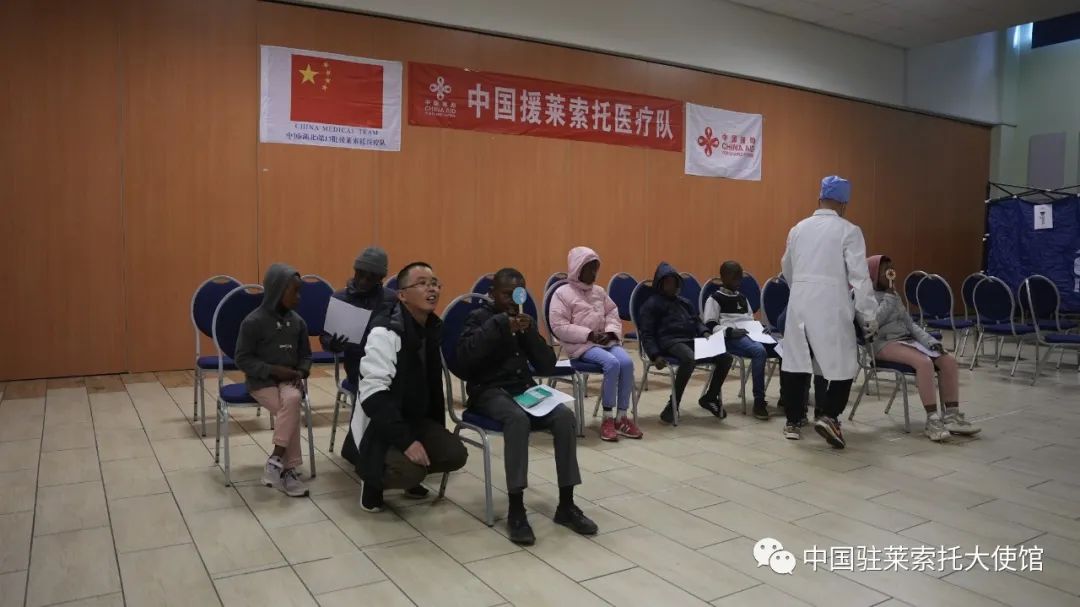 捐赠仪式结束后,中国援莱医疗队为到场的孩子进行了免费健康体检并捐赠部分常用药品。