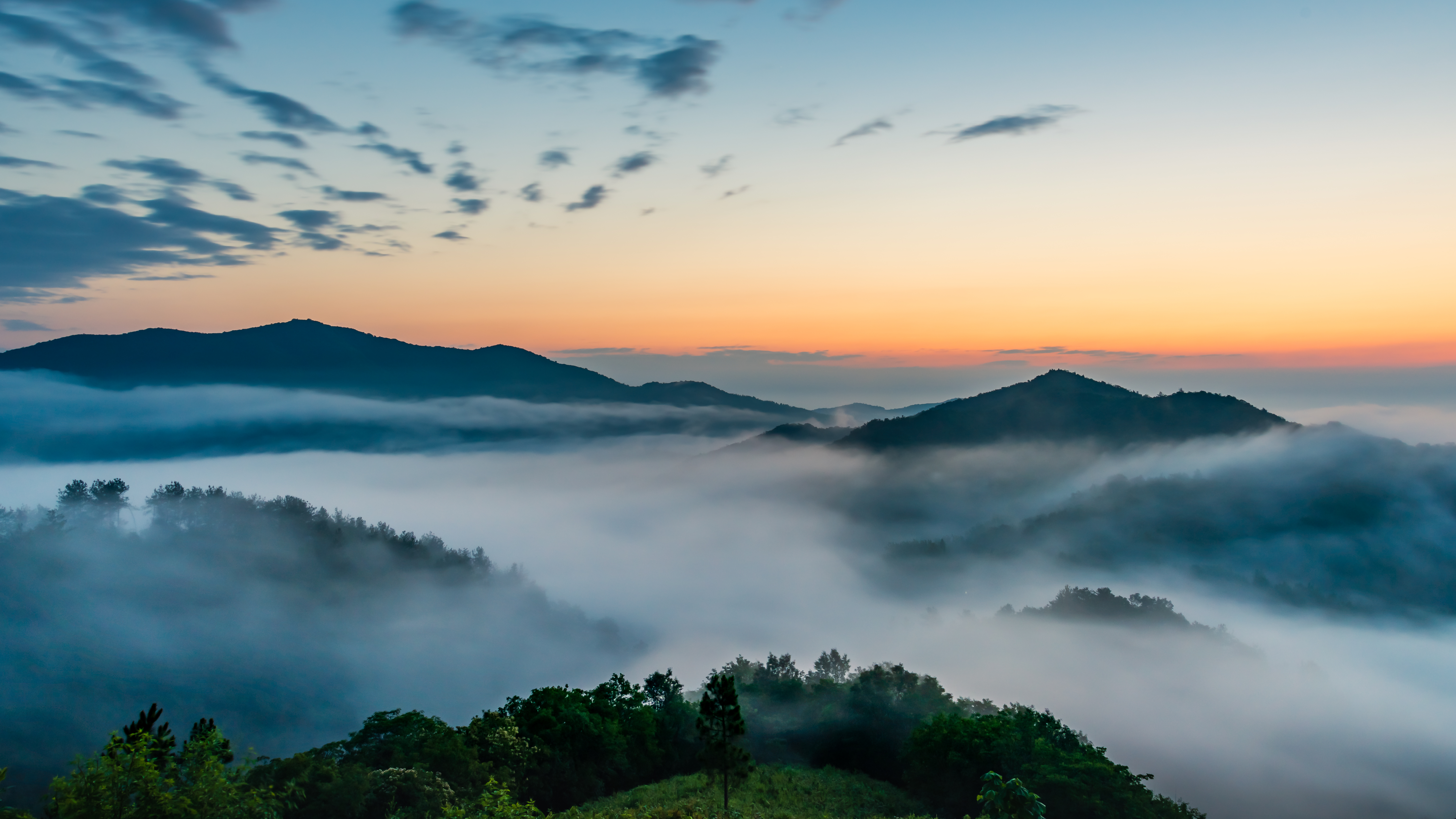 “浮云不共此山齐,山霭苍苍望转迷。”飘逸的云雾在山峦间蜿蜒萦绕,或高低错落,或层叠相拥,时而蜿蜒迂回,时而倾泻流动,宛若一幅美丽的云雾山水画作。