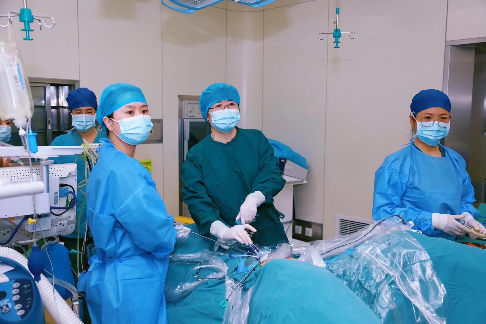 杜欣带领团队做妇科单孔腹腔镜手术