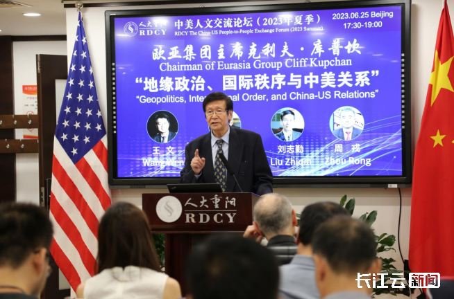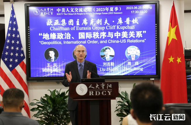 6月25日,全球最大政治风险咨询公司、美国欧亚集团主席克利夫·库普坎(Cliff Kupchan)一行访问中国人民大学重阳金融研究院(人大重阳),与多位研究员围绕国际形势、中美关系、智库合作等话题展开深入交流,并在由中国人民大学重阳金融研究院主办、中国人民大学中美人文交流研究中心承办的“人大重阳中美人文交流论坛(2023年夏季)”上做了题为“地缘政治、国际秩序与中美关系”的公开演讲。据悉,这是新冠疫情三年半以来第一位在中国智库线下公开演讲的美国学者。