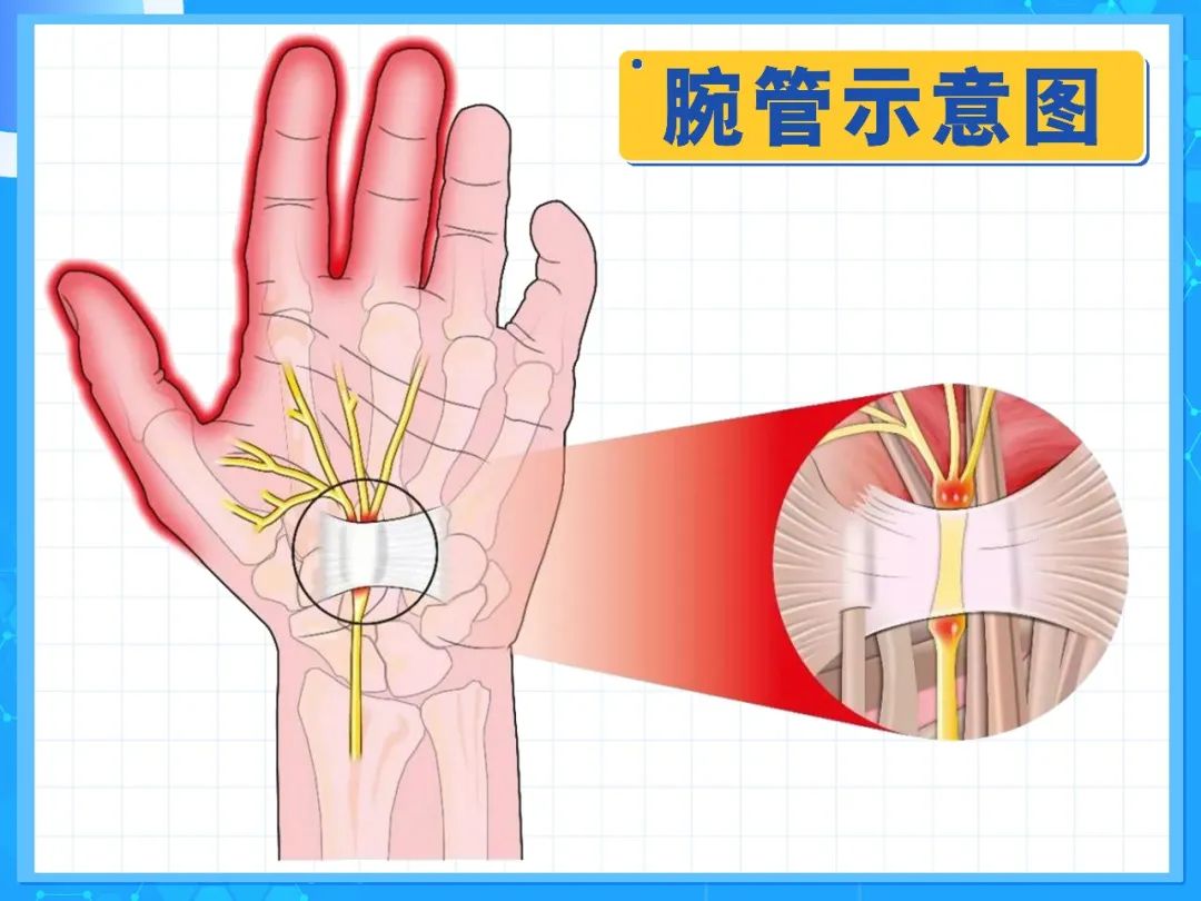 腕管综合征也叫“鼠标手”,由正中神经受压引起。腕管是手部掌侧被骨头和韧带围绕的狭窄通路。与腕管综合征相关的因素很多,包括:解剖学因素、性别、炎症、药物、肥胖等。其发病率与职业密切相关,如厨工、画家、机动车人员及长期使用电脑者等。
