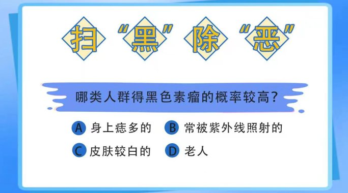 三道选择题做完,不知道大家是否对自己身上的痣更加了解了呢?黑素瘤是一种恶性程度相当高的恶性肿瘤,虽然发病率不算高,却是一种可能致命的皮肤癌。但因为该病的早期症状比较隐匿,不少患者就诊时已是晚期。黑色素瘤早期治愈率较高,晚期患者5年生存率仅5%至10%。