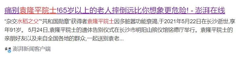 髋部骨折也被称为“人生最后一次骨折”,是老年人健康的“头号杀手”。袁隆平院士去世前就曾摔跤引发身体不适,从跌倒到不幸去世仅2个多月,让国人为之痛惜。
