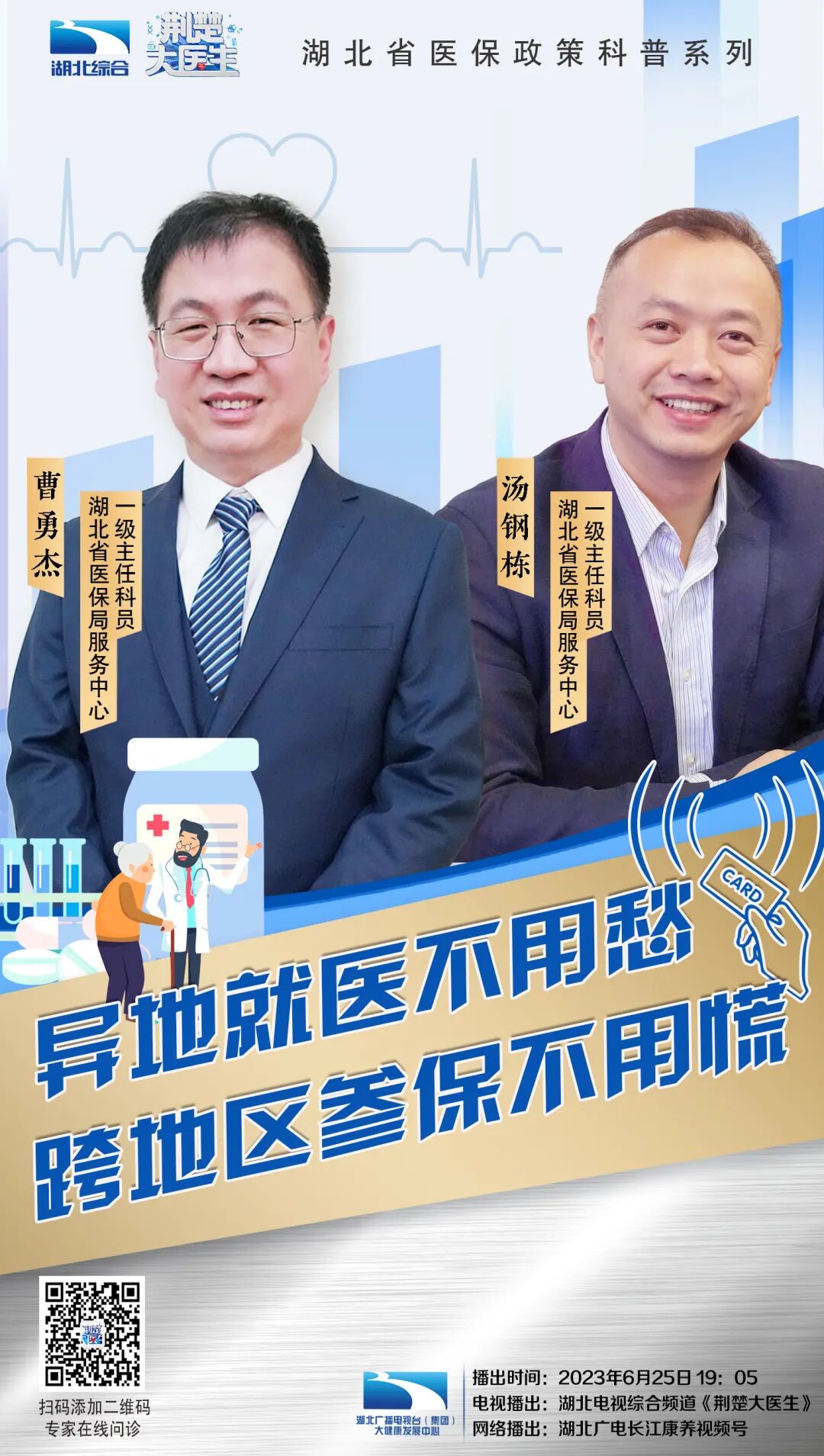 由湖北省医疗保障局、湖北广播电视台大健康发展中心共同策划“湖北省医保政策科普系列直播”之《异地就医不用愁 跨区参保不用慌》,湖北省医保局服务中心一级主任科员曹勇杰和汤钢栋做客,为大家权威解读相关政策。