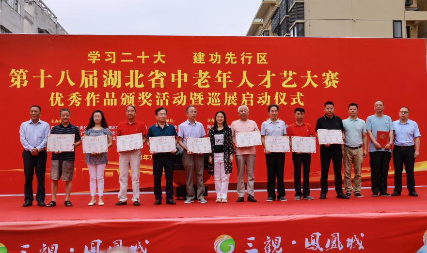7月19日上午,应湖北省恩施州巴东县人民政府承办申请,由省老龄办、省卫生健康委、省委老干部局、省民政厅、省文化和旅游厅、湖北广播电视台联合举办,湖北老年书画艺术中心、湖北广电报业有限责任公司承办,中国人寿保险股份有限公司湖北省分公司协办的2023年第十八届湖北省中老年人才艺大赛颁奖活动暨获奖作品巡展启动仪式,在恩施州巴东县野三关镇政府广场举行。