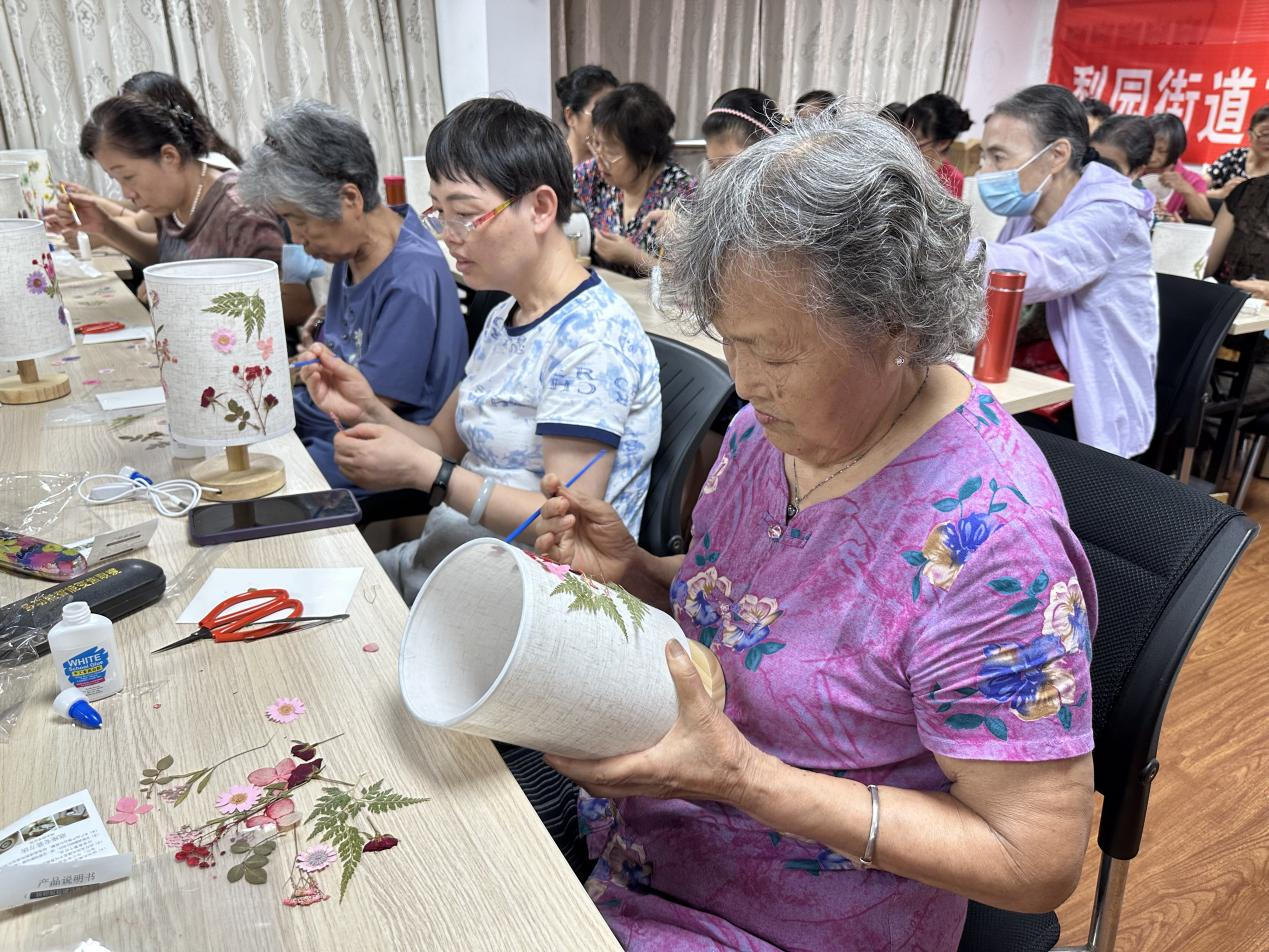 7月26日,武汉市洪山区梨园街道省电社区开展了一场别开生面的活动——非遗巧手压花制台灯,活动现场吸引了30多名居民的参与。