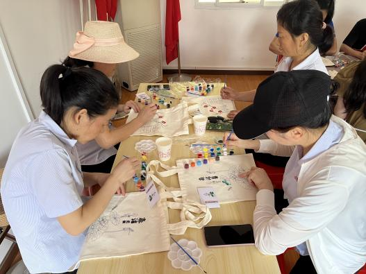 “这真的是一次非常特别和愉快的体验!自己做出的成品十分有质感。莲花寓意很好,象征清正廉洁。以后再看到这个包包,就会想到今天的回忆和美好的寓意。工作人员们都很有耐心,非常感谢社区举办这样的活动,如果以后还有,我一定还会来积极参加!”一位参与了活动的居民真切地表达了活动的感想。