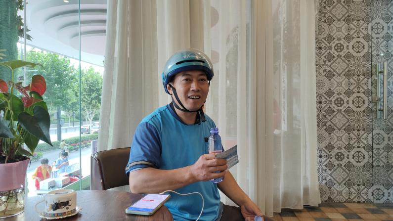 在六合社区江城蜂巢爱心驿站,快递小哥黄师傅正在跟社区工作者反馈进老旧小区送餐时发现的安全隐患。作为走街串巷的“移动探头”,六合社区经常跟驿站读书休憩的小哥聊里弄拉家常,潜移默化中让小哥有意识地注意一些环境卫生、安全隐患等问题,鼓励他们积极参与融入基层治理工作,担当社会责任,展现“新”生力量。