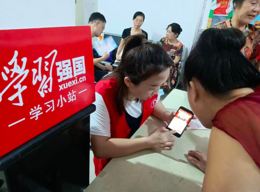 在学习加油站区域,学习强国app上播放的众多内容,吸引了不少居民对该平台的兴趣,大家纷纷向志愿者们了解情况。志愿者们采取“面对面”的宣讲、“一对一”指导的形式,为他们讲解,帮助他们下载、注册、认证,进行学习指导。