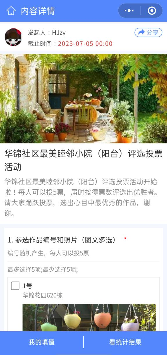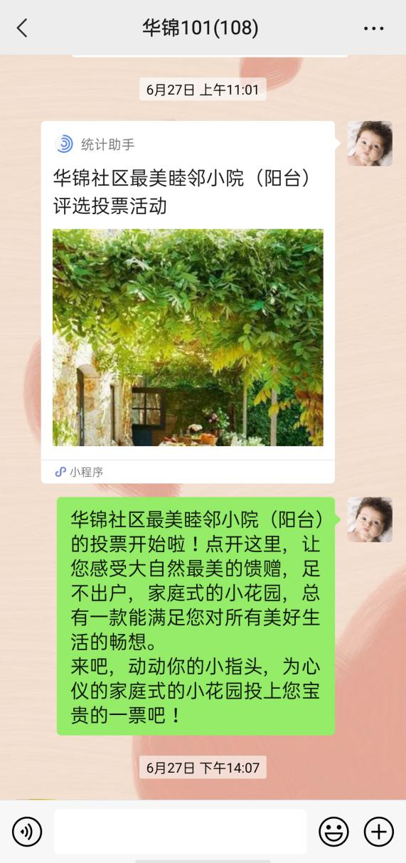 此次评选活动共有16位社区居民通过线上或线下报名投稿了自己的小院和阳台作品,华锦社区通过微信群发起面向全社区居民的网络投票和线下展板投票相结合的方式,短短十天,16个作品共收到1500余份投票,之后投票人气最高的6个作品进入了6强的评选。