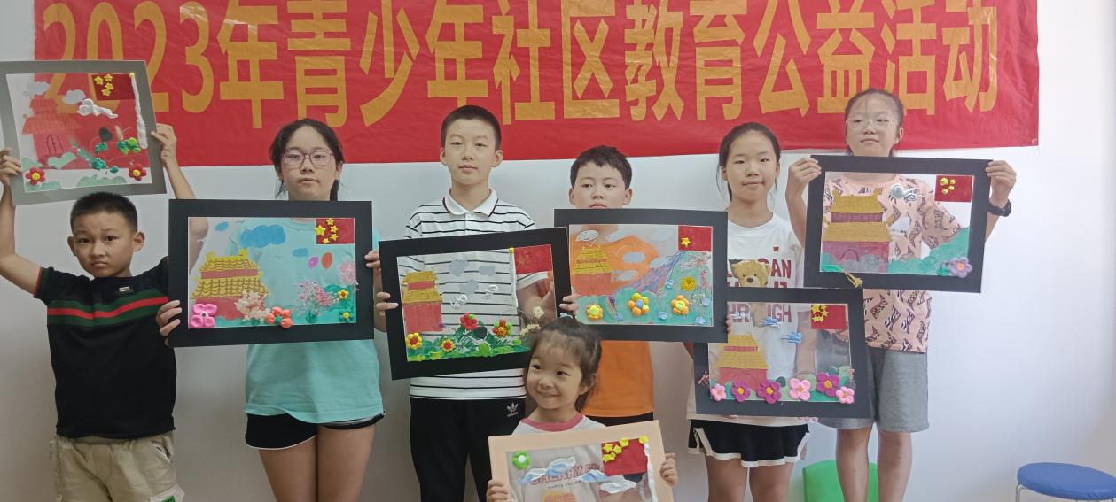 在益友社工老师的引导下,小朋友们还做了“我心中的天安门”手工活动,表达了对祖国和天安门的热爱和敬意。这种社区教育方式不仅让小朋友们更加深入地了解了祖国的历史和文化,还提高了他们的动手能力和创造力。