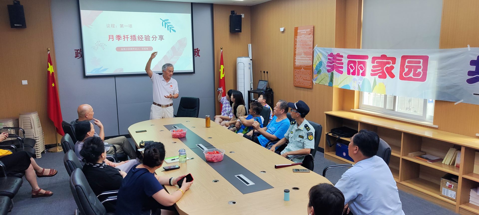 近日,武汉市东西湖区常青花园街道常青花园第四社区组织开展“美丽家园”协商议事活动。活动现场,来自常青花园金苑小区的园艺达人王绍海向大家开心的分享了月季扦插苗进社区活动中领取的月季扦插苗的生长情况和种植经验,来自区园林局的朱萌主任也向大家介绍了东西湖区绿色驿站建设的相关情况。他们的分享给与参加活动的居民和园艺爱好者极大鼓舞和启发,大家纷纷交流月季苗种植的相关知识。
