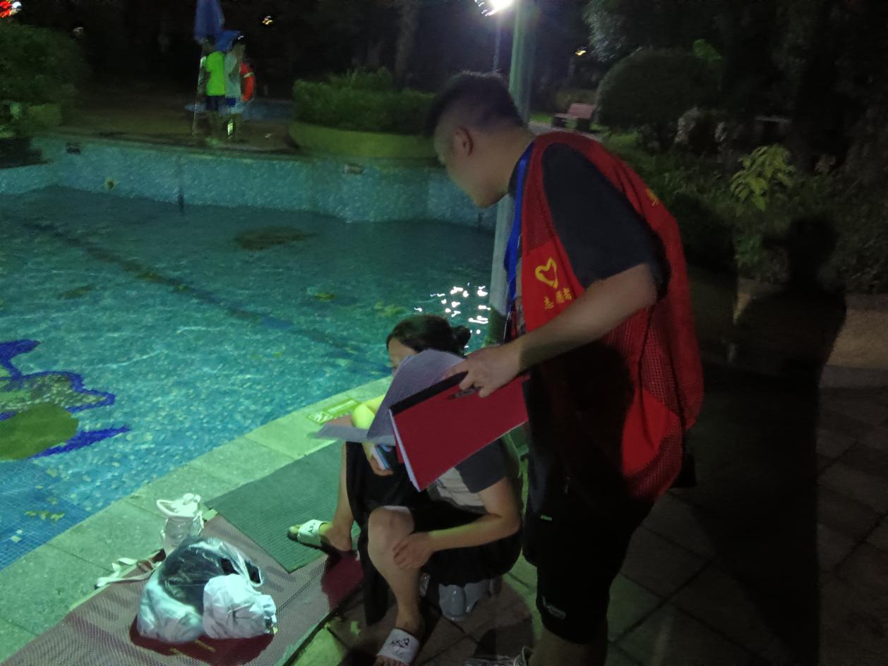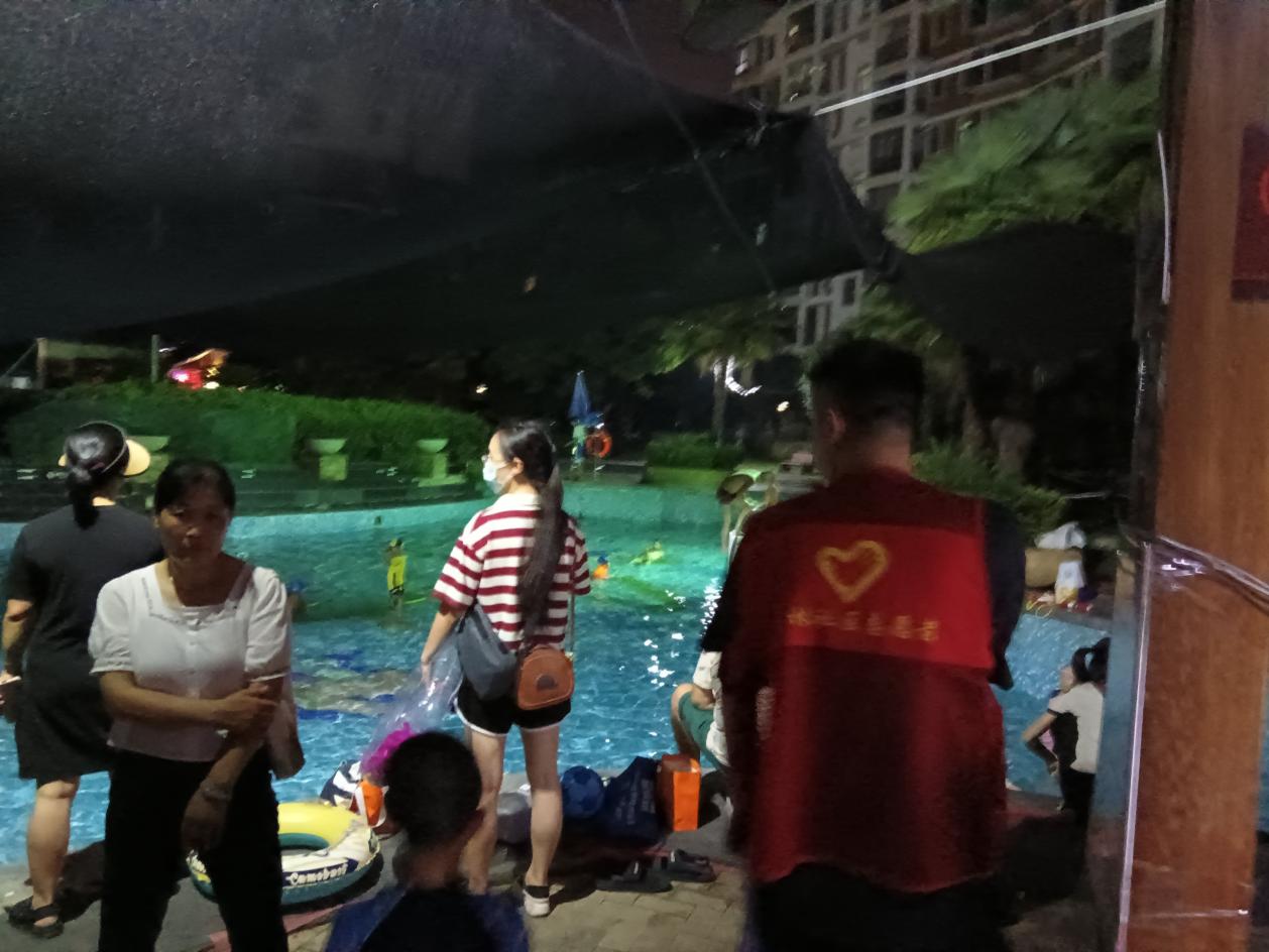 社区组织志愿者巡查队伍,对辖区内的游泳池和附近的太子湖进行巡查,一旦发现有未成年人在水域附近逗留的情况,第一时间进行劝离,并对沿湖的“防溺水”警示牌、游泳池救生工具等进行检查,为有效预防溺水事故的发生,切实做好防溺水安全宣传教育工作,社区已安排工作人员和志愿者在暑期进行轮班巡湖和游泳池巡查工作。