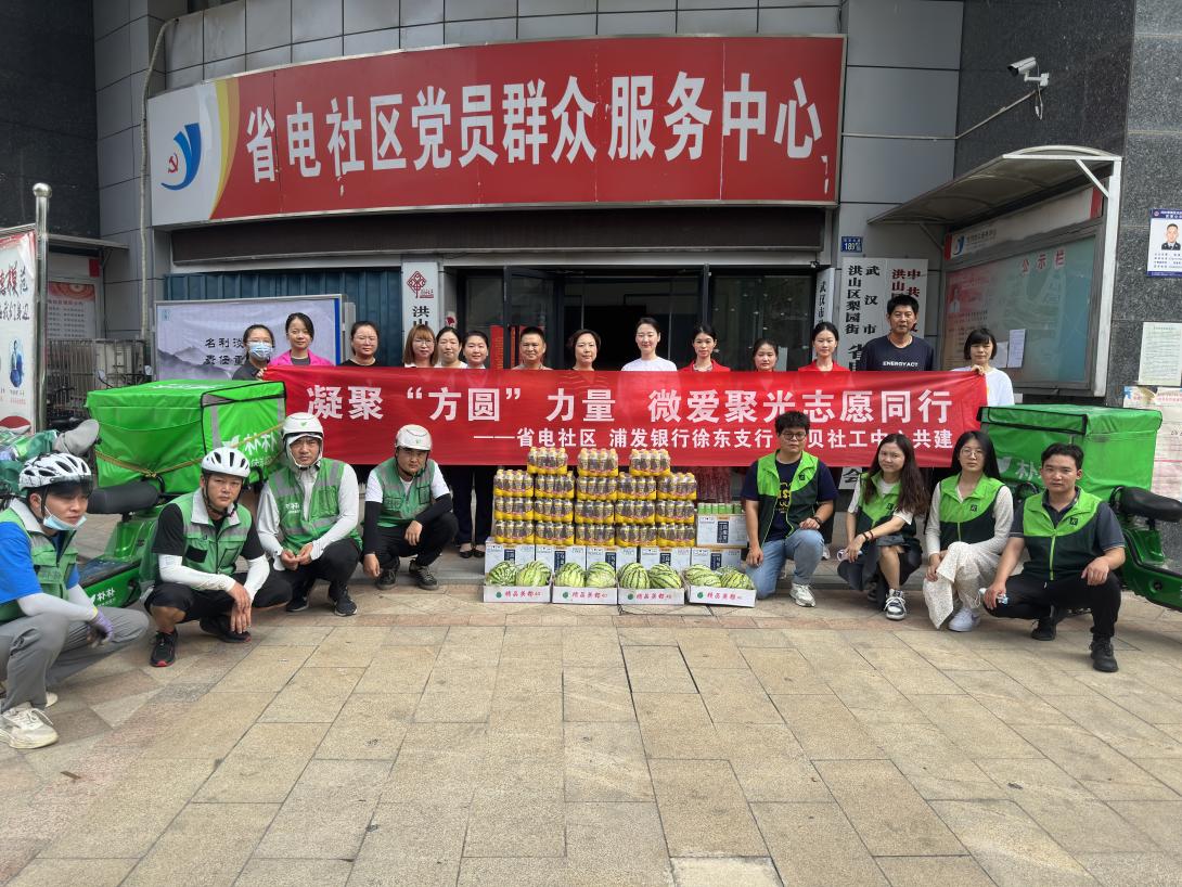 7月28日,武汉市洪山区梨园街道省电社区携手浦发银行徐东支行以及爱贝社工中心开展以“微爱聚光”为主题的公益活动,在仲夏为新业态从业人员送去专“暑”凉意,同时也开启了社区“邻好生活节”。