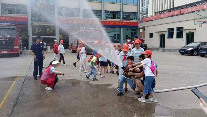 经过消防员耐心细致地讲解,青少年们认识不同用途的消防救援车、学习灭火器的正确使用方法、了解不同情形下穿的救援服,在提高消防安全意识的同时,对于消防员这一份职业有了更深一层的理解与钦佩。参观期间,青少年们在消防员的指导和协助下,抱起水枪,控制水流的压力,亲身体验水枪出水“灭火”,在寓教于乐中掌握消防安全知识。