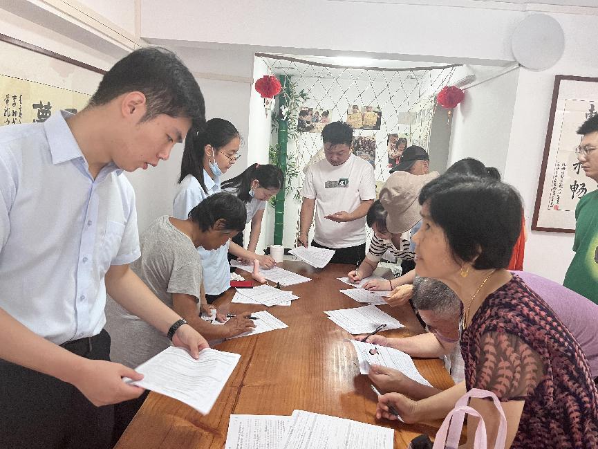 活动前期,黄龙山社区工作人员通过问卷收集居民需求了解民意,并通过在社区网格微信群、小区居民群发布通知等多种方式让居民们知晓社保卡换卡的相关事宜。活动当天,社区提前在活动现场为辖区居民准备好消暑解渴的西瓜和绿豆汤,大家听闻消息后一大早就在宜盛花园小区内排起了长长的队伍。汉口银行的工作人员使用专业设备现场为居民们办理第三代社保卡升级更换,同时为居民耐心解答关于社保卡升级前后的区别和升级后如何使用等问题。社区工作人员一边忙着做登记、收集资料,确保大家顺利高效的办理换卡业务;一边为排队的居民递来西瓜和绿豆汤,为大家送去夏日的清凉。“社区上门服务真是太周到了,这比自己大热天跑去银行排队换卡方便太多,真是感谢社区……”宜盛花园小区居民肖大姐笑着说。