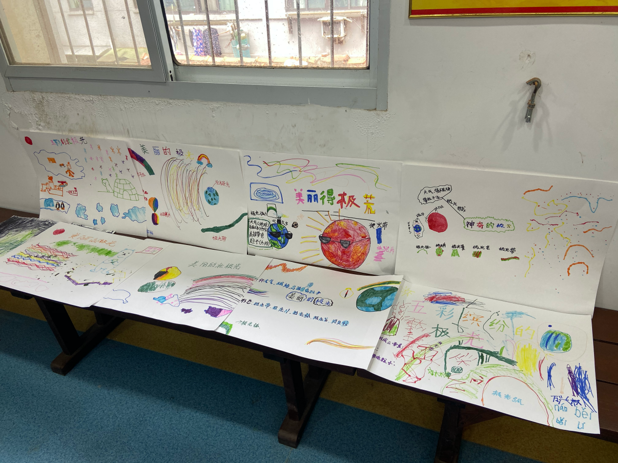 “什么是极光?”“极光是哪里的物理现象?”“极光是怎么形成的呀?”“它为什么会呈现不同的颜色呢?”......老师通过问题引发孩子们的思考。随后,老师通过视频,让孩子们欣赏了神秘梦幻、绚丽多彩的极光,让大家在学习过程中更加了解有关极光的各种知识,并且用自己的方式记录下来,有的小朋友绘制了不同形态的极光——极光带、极光片、极光芒等等;有的小朋友记录了课堂知识——极光形成的原理、形成极光的“三要素”、极光的分布特点等。