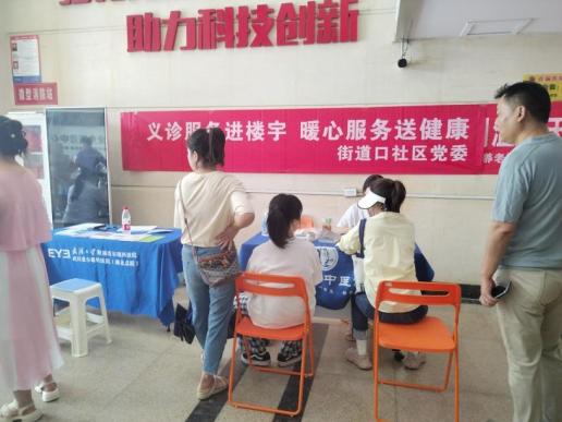 为持续优化运营环境、精准服务街道口商务楼宇企业职工,7月28日上午,武汉市洪山区珞南街道街道口社区联合爱尔眼科医院和中医院在兆富大厦一楼开展了“义诊服务进楼宇,暖心服务送健康活动”。