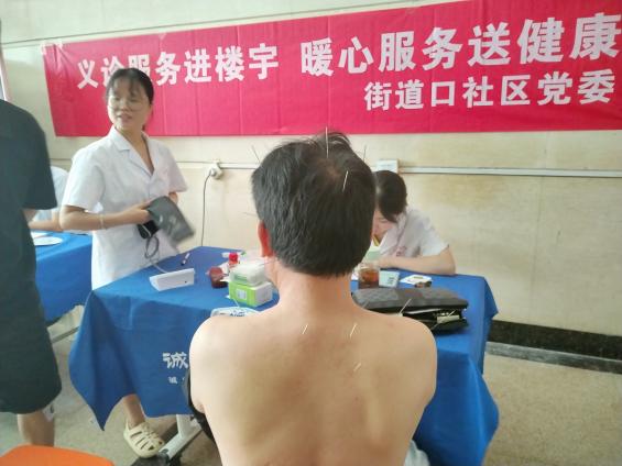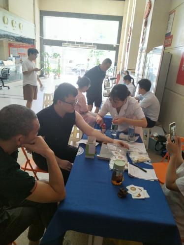 活动现场,义诊医生为每一位前来就诊的楼宇职工、门面员工们提供免费量血压、测视力、针灸、贴三伏贴以及健康咨询等服务,耐心地询问企业职工身体状况,解答他们的问题,对其健康症状进行相关的讲解并给予饮食建议,让他们及时了解自己的身体状况及相关疾病的预防。