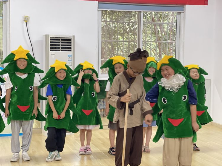 在结业仪式上,志愿者和孩子们精心准备了文艺节目,孩子们用稚嫩的童声,绘声绘色的角色扮演,为大家带来了精彩的情景剧表演《森林爷爷》。
