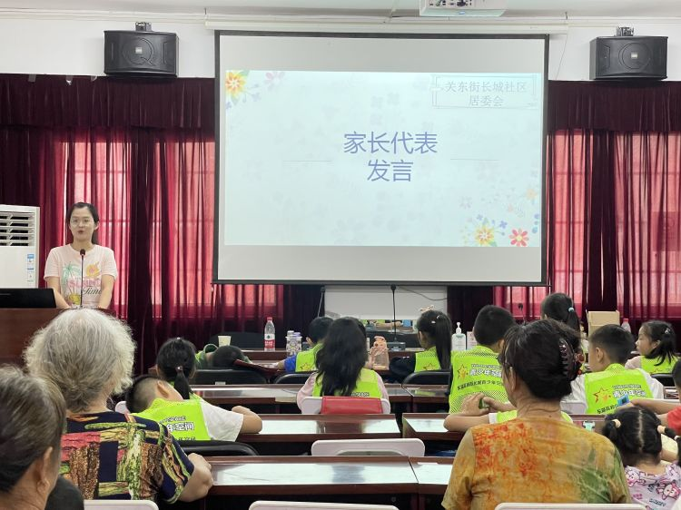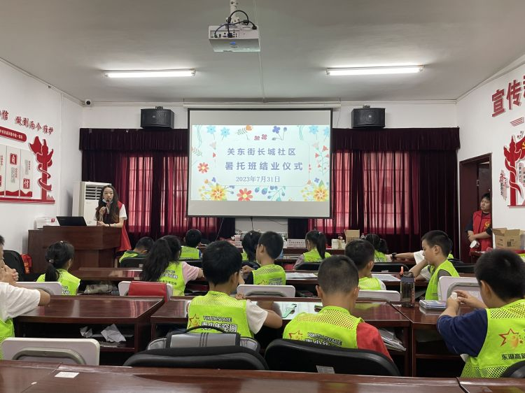 7月31日下午,武汉东湖高新区关东街道长城社区举办了2023年暑期托管班结业典礼,来自托管班的30多位孩子及孩子家长参与了现场活动。