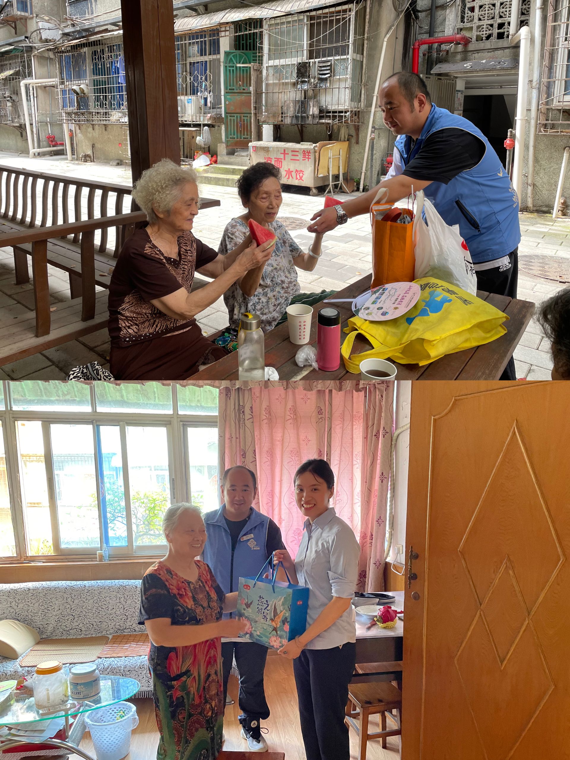 活动中,一行人冒着高温酷暑,组成志愿者小分队,逐一对社区空巢、独居老人开展“敲门”行动,并为他们送上解暑大礼包,还不停嘱咐老人,“夏季高温天气尽量减少外出,在家里要注意防暑降温,注意用电、用气安全。”