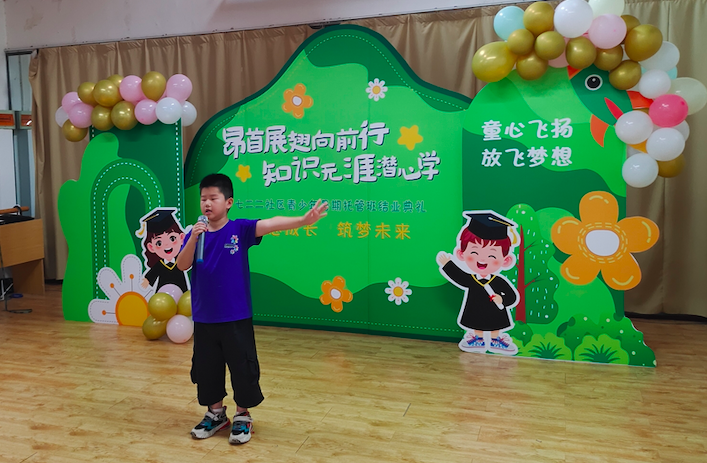 社区暑期托管班今年7月初开班,共有26名学生、15名教师、4名大学生志愿者参与,大家一起在社区度过了一个难忘且有意义的暑假。结业典礼现场洋溢着欢快的气氛,会场四周悬挂着五彩缤纷的海报和鲜艳的气球,墙上挂着孩子们精心制作的手工作品,每一件都记录着孩子们欢乐的时光。