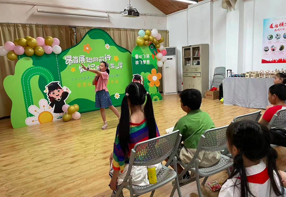 7月28日下午,湖北省武汉市洪山区珞南街道七二二社区举行了暑期托管班结业典礼活动,社区领导及学生家长共同参与,见证回顾了暑期托管班学生的手作、科普、艺术等课程成果。