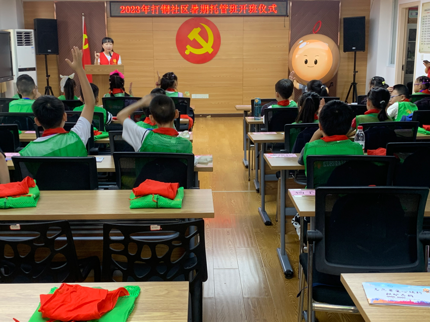 “倪校长你好,今年暑假我又来了,我太喜欢这里了。”开班仪式上社区党委书记倪娟和孩子们进行了亲切的互动,讲了本次开展托管班的宗旨、注意事项等内容,孩子们给出了热烈的掌声。