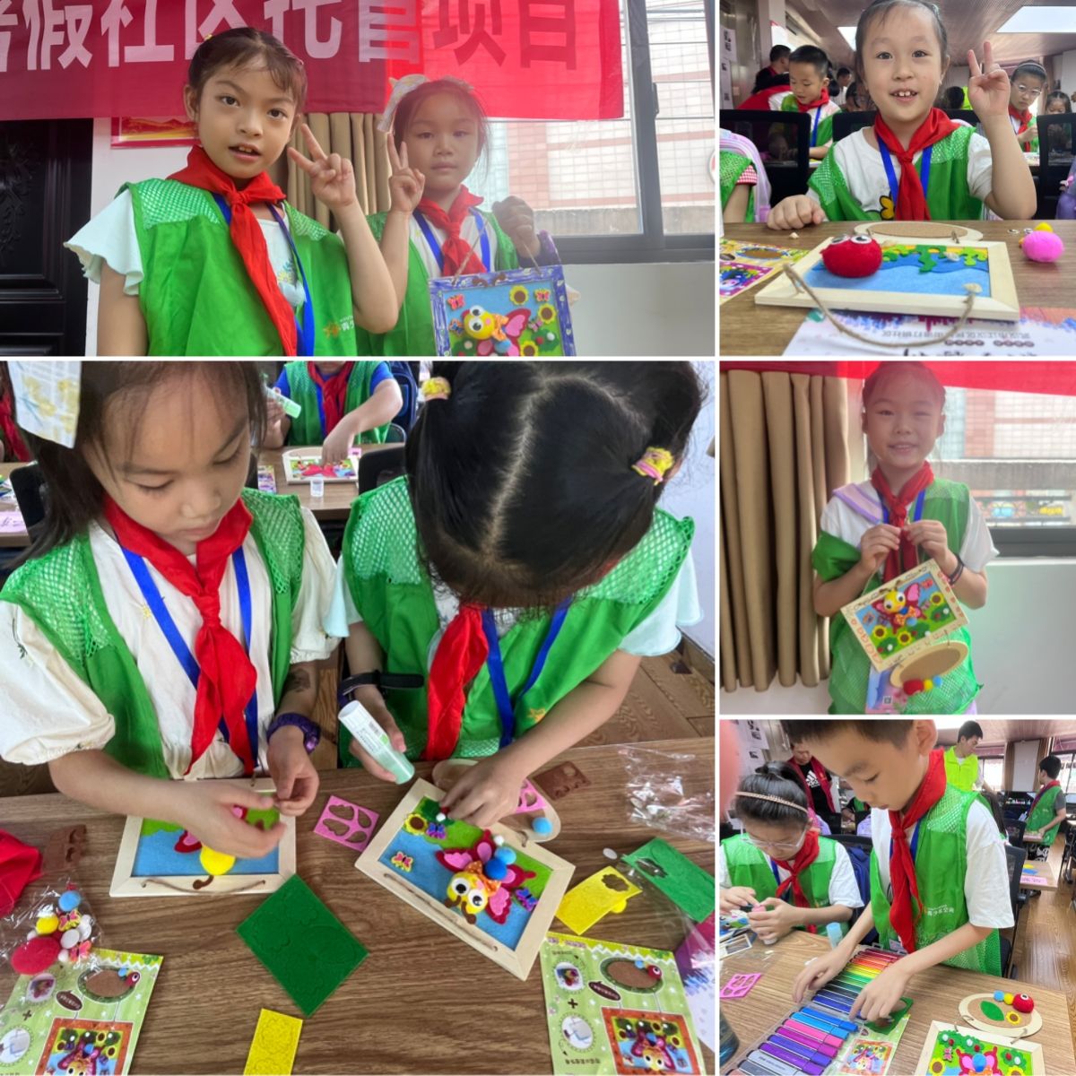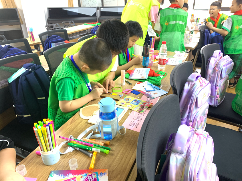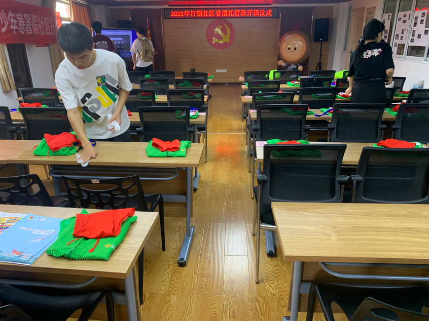 为了培养孩子们的创新思维和动手能力,在开班仪式后,社区组织托管班孩子进行了手工品创意制作。