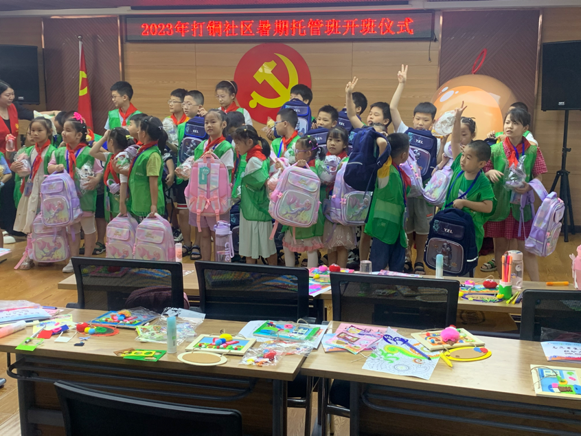 开班现场,打铜社区给孩子们精心准备了“见面礼”,有精美的书包、优质的口罩、别致的水杯……