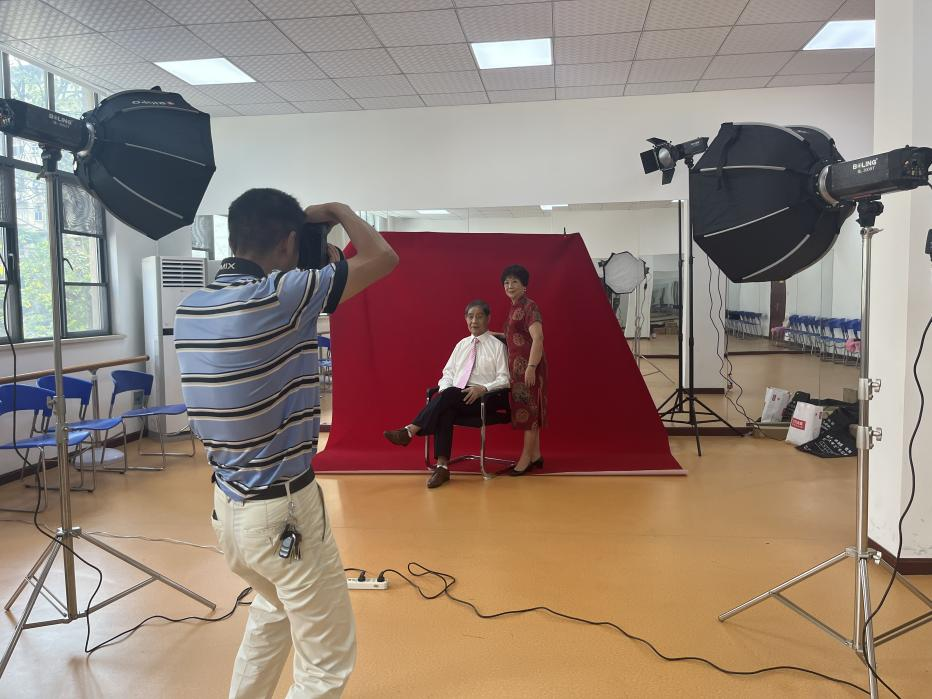 “今年是我和我的老伴结婚55周年,原来委屈了她,至今都没有去拍过艺术照婚纱照,她其实很爱美,感谢社区给我们退伍家庭提供的这次机会。”退伍老兵喻维帮说到。他和爱人田瑛不仅都是社区退休老党员,同时也都是社区志愿服务队的队员,两人轻轻挽手,满面笑容,幸福的时刻在摄影师的镜头中悄然定格。