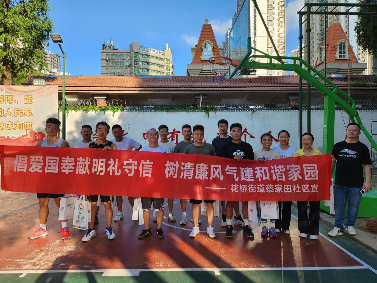 活动最后,社区开展了友谊篮球赛活动,“退役不褪色队”和“正在扛起奋斗大旗队”的队员们在篮球场上挥洒汗水,精诚团结,各种配合和快攻快守让现场观众阵阵叫好,最终,“正在扛起奋斗大旗队”赢得胜利。