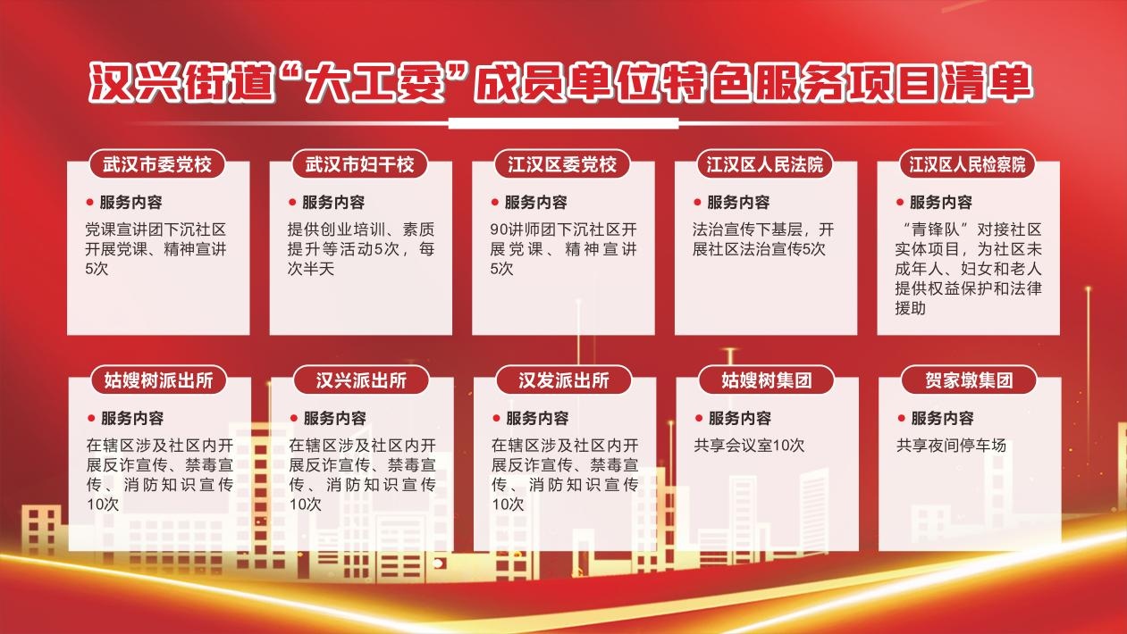 为深化实施两新党建“聚力工程”,纵深推进两新党组织“党建引领、融合赋能”专项行动,巩固提升“七助”“四进”服务质效,武汉市江汉区汉兴街道从严落实江汉区委组织部文件精神,以两新组织周边社区为主,通过服务共享、项目共建、载体共创的形式在全街开展“1+1”结对共建项目,推动社区与两新组织协同共治、互利共赢。