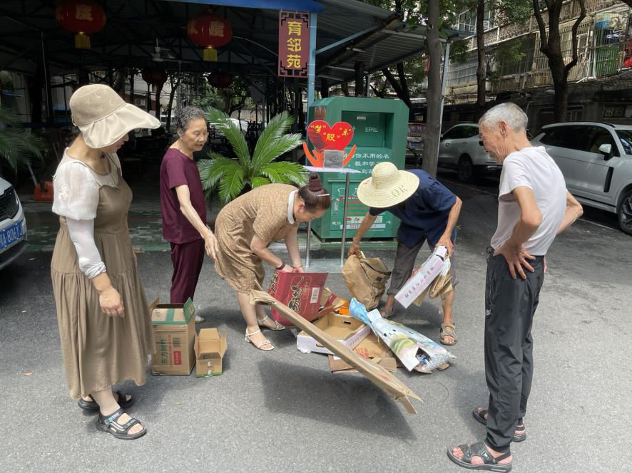 “肯定有撒,攒了一周的纸盒子和矿泉水瓶子都准备好了,那么有意义的活动每周一次,我是绝对要参加的。”这是武汉市江岸区花桥街道育才社区市政苑小区两位居民的日常对话。