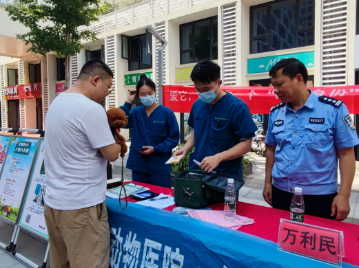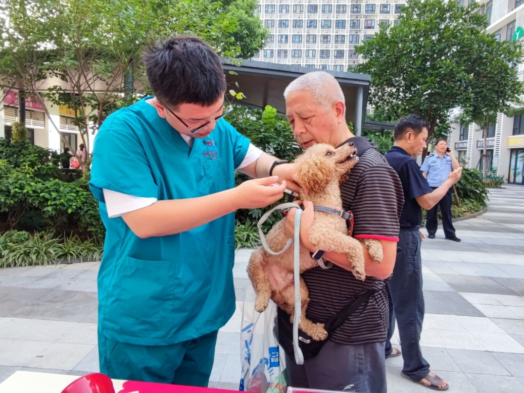 活动现场,办完证的张爹爹高兴地说:“一直都想给我们家狗狗办证,但年纪大了,也不知道去哪里办,今天社区把办证的请到了家门口,真的是太感谢了!”