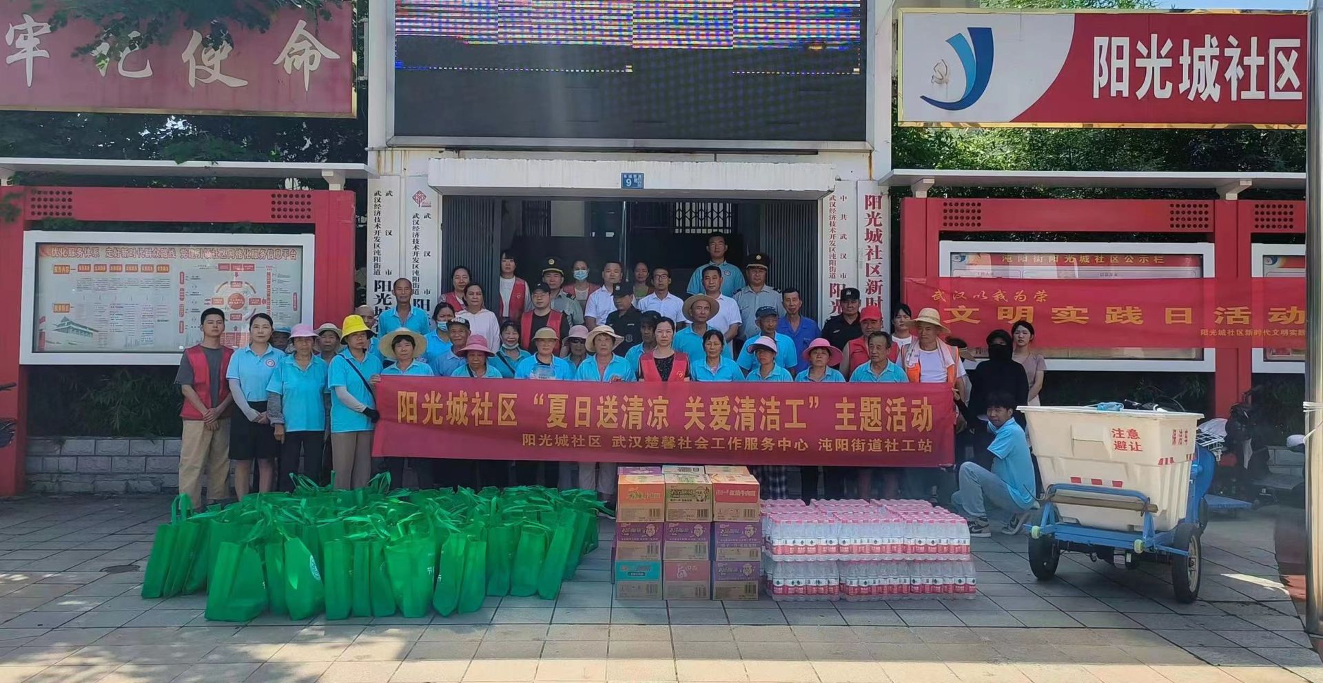 炎炎夏日,酷暑难耐。对于小区环卫和安保人员而言,无疑是一种“烤”验。为让一线工作者感受到来自社区大家庭的尊重与关爱,8月3日上午,武汉经济技术开发区沌阳街道阳光城社区联合楚馨驻沌阳街道社工站开展“新时代文明实践日‘夏日送清凉’”慰问活动,为坚守在工作岗位上的一线工作者送上“清凉大礼包”。