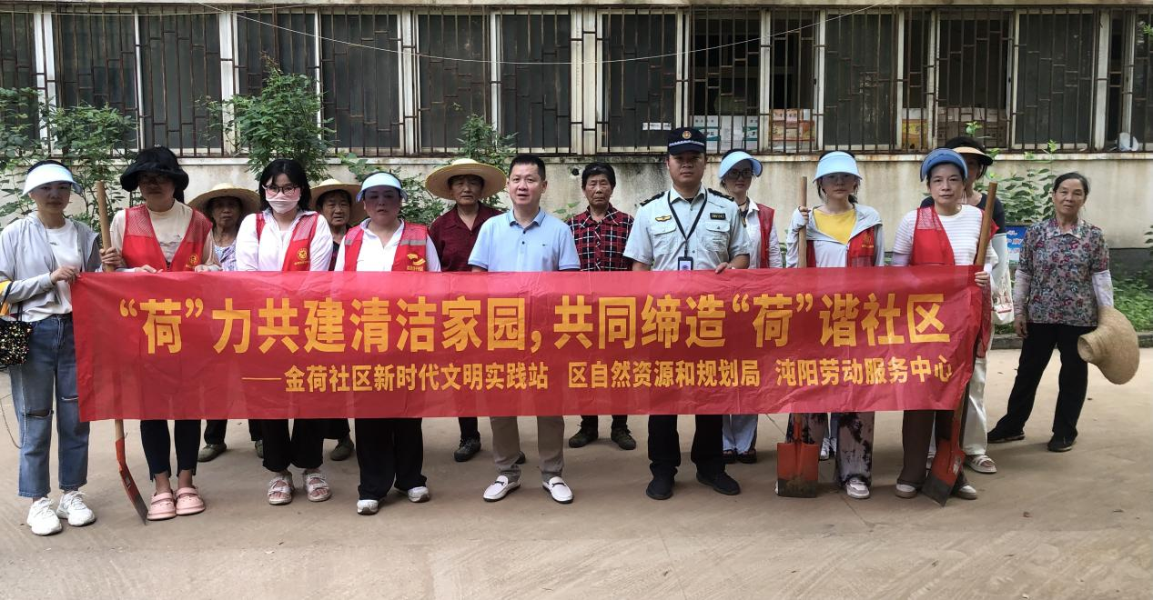 为深入巩固文明城市创建成果,充分发挥党组织服务基层、服务群众的作用,进一步改善社区环境质量,美化居住环境,提升城市形象,8月4日,武汉经济技术开发区沌阳街道金荷社区联合共建单位区自然资源和规划局、沌阳劳动服务中心、沌阳街综合执法中心在辖区开展“‘荷’力共建清洁家园 共同缔造‘荷’谐社区”志愿服务活动。