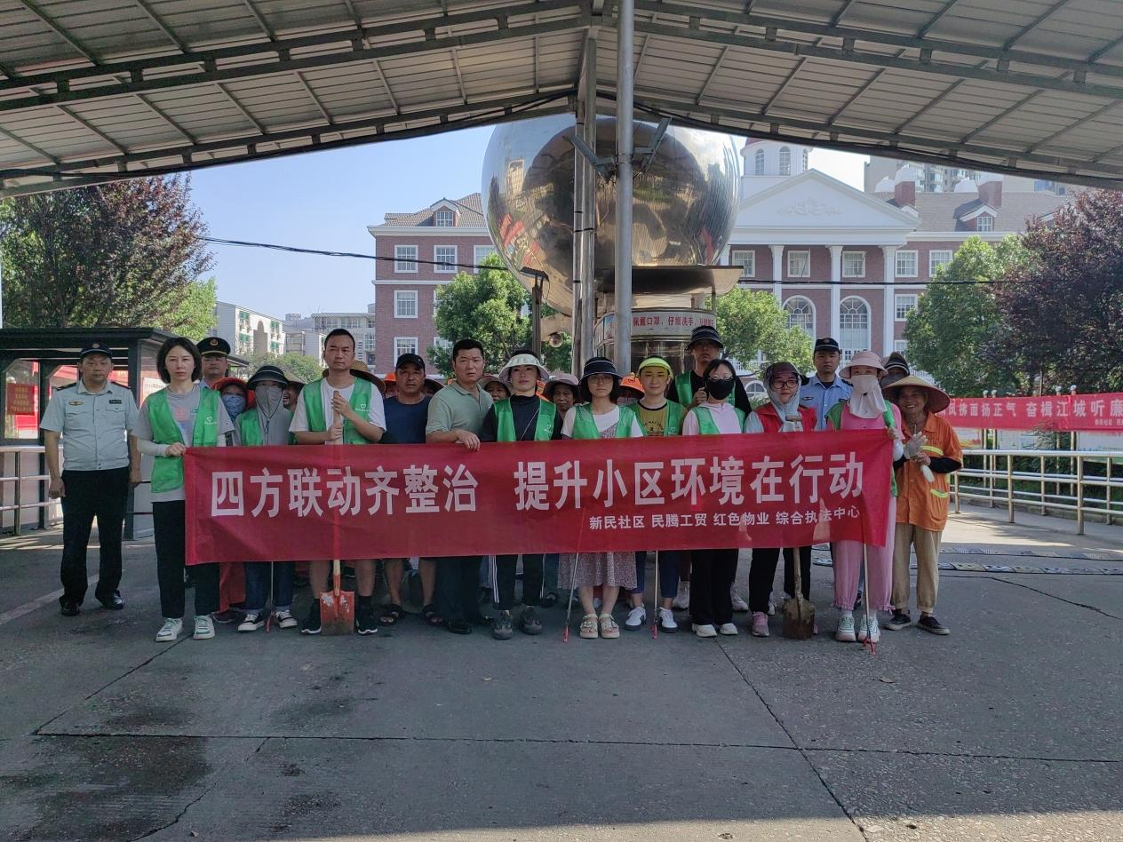 为增强居民保护环境卫生的意识,调动居民参与改善居住环境的积极性,沌阳街道综合执法中心,新民社区,民腾公司,红色物业多次召开四方联动会议,要鼓励居民共建共享小区环境,通过线上线下等方式宣传美化环境的重要性。新民小区创建以社区为平台,居民点单、四方下厨方式,各领订单,各负其责,哪里有问题哪里就整治的快速反应机制,用实际行动提升了小区环境,用实际行动去调动居民爱护环境的意识。